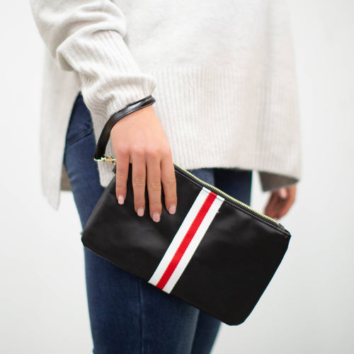 Preppy Stripe Zipper Clutch - Red/White